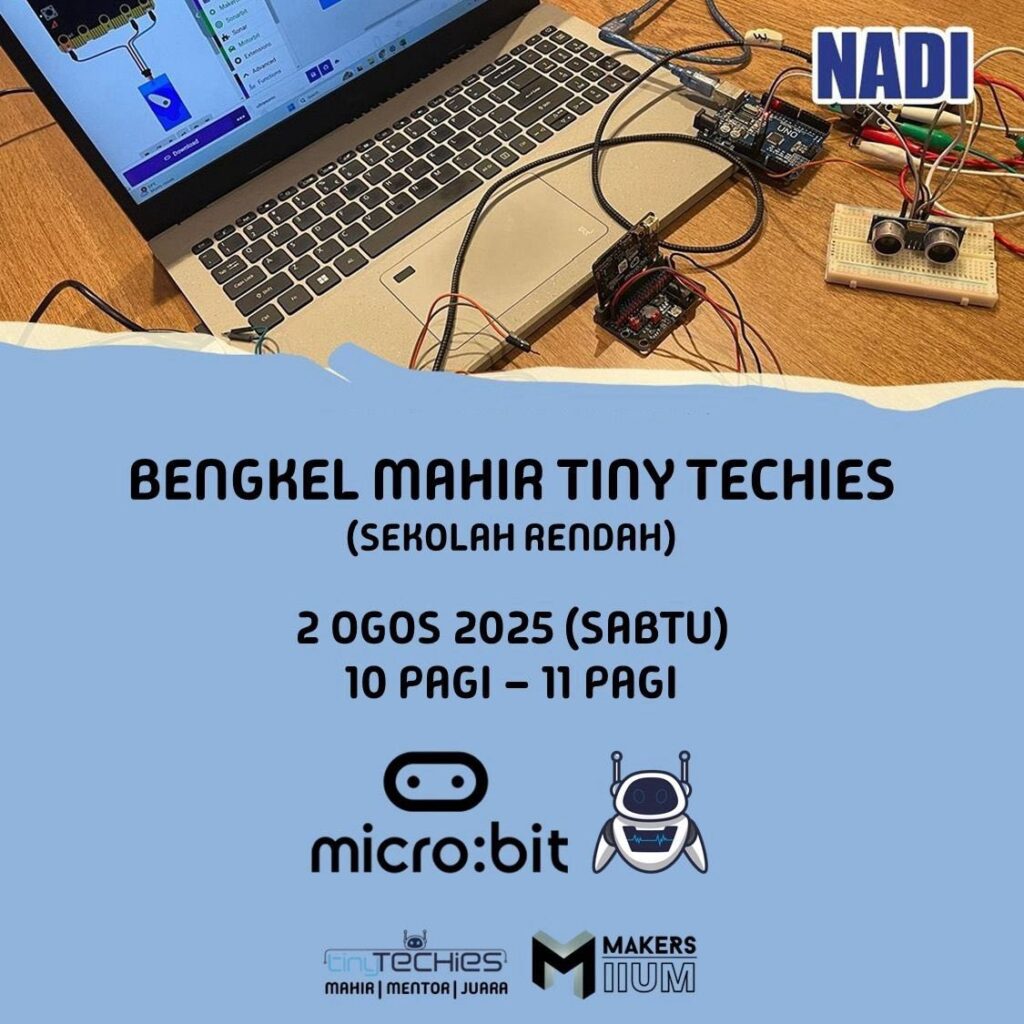 TINY TECHIES (SEKOLAH RENDAH) | BENGKEL MICRO:BIT Aktiviti Semasa | 26 August 2025 TINY TECHIES (SEKOLAH RENDAH) | BENGKEL MICRO:BIT 2 Ogos 2025 10.00 pagi – 11.00 pagi Pelajar Sekolah Rendah Pusat Sebaran Maklumat Nasional – NADI Kg.Terbok